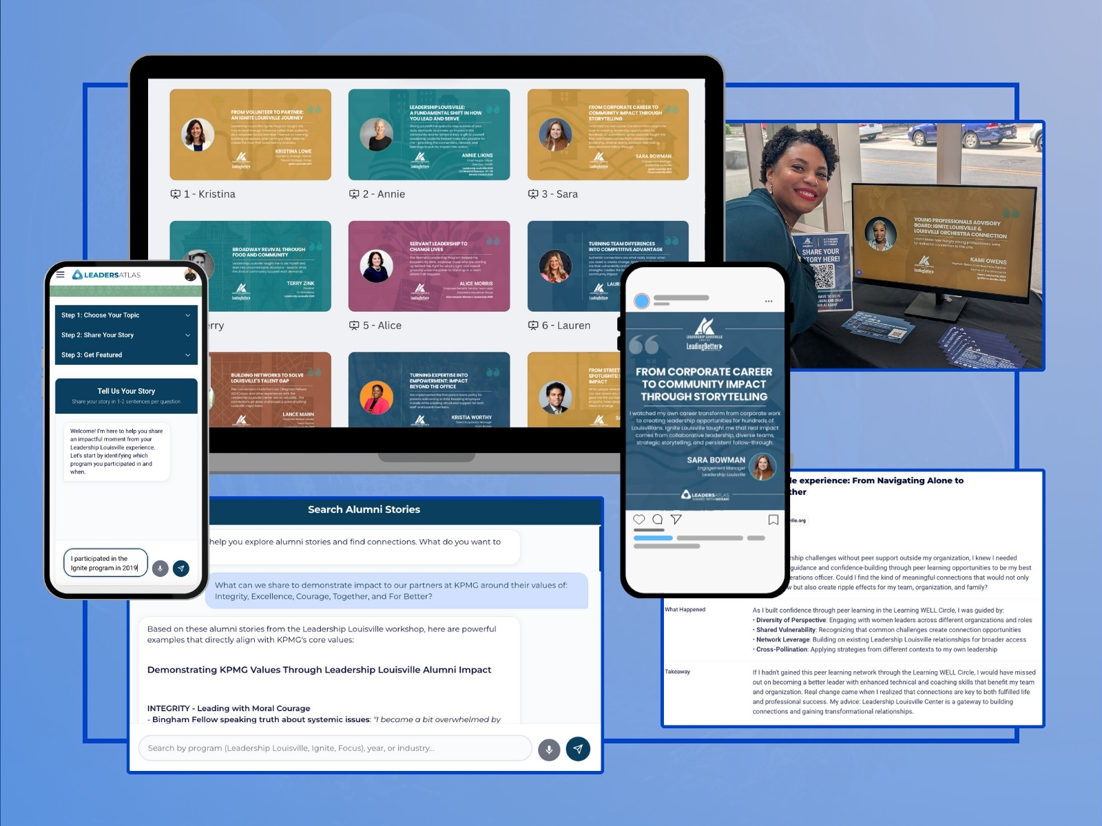 Leadership Louisville needed to showcase alumni impact at their annual luncheon for 1,300+ attendees and sponsors, but collecting stories manually took 3+ months with low response rates.